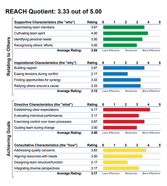 REACH is measured as a Quotient (a score out of 5) and is visually represented by an individuals REACH Zone.